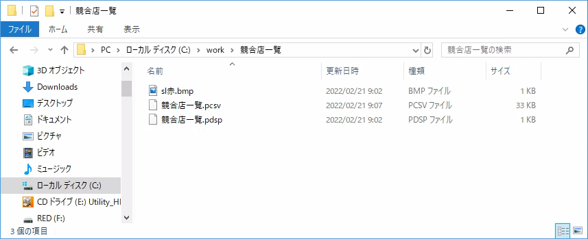 エクスポートすると、下図のように指定した個所に「競合店一覧」フォルダが作成され、その中に、3つのファイルが作成されます。 -